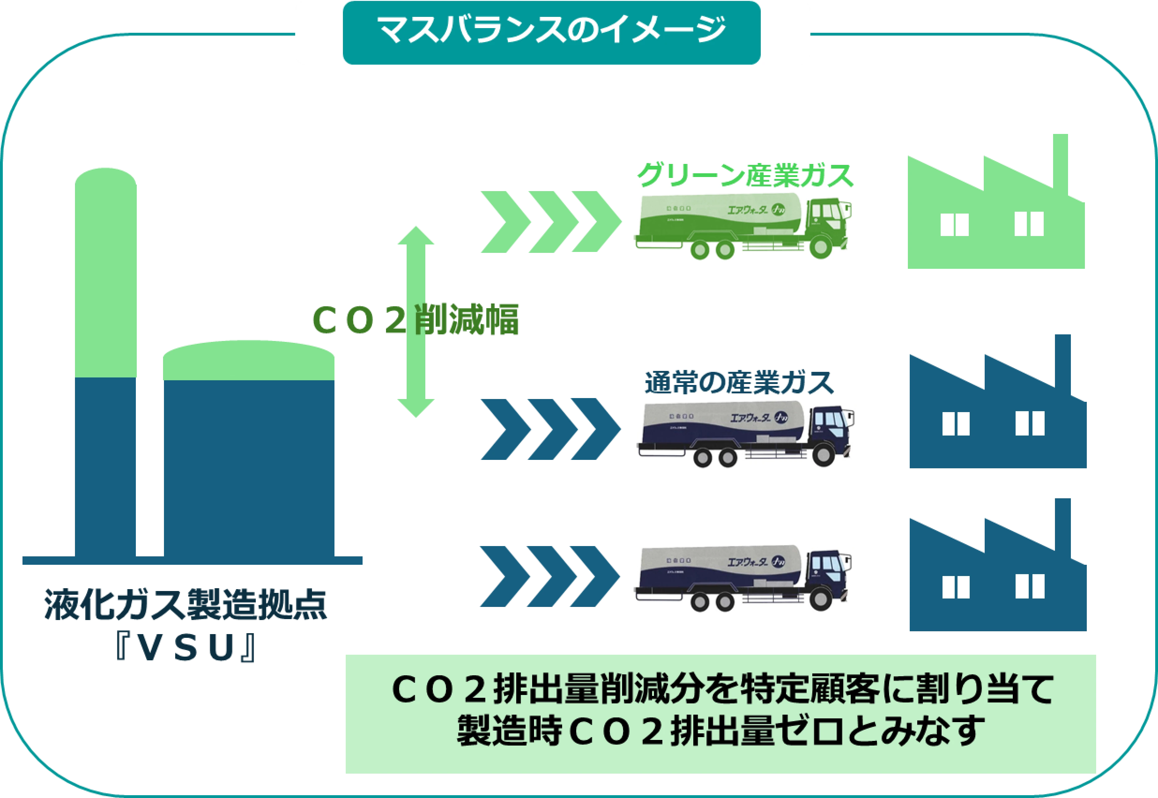 ※2 当社では、マスバランス方式で製造時のCO2排出量をオフセットした産業ガスを「グリーン産業ガス」とし、お客様の「スコープ3」排出量を低減することができる製品と位置づけています。