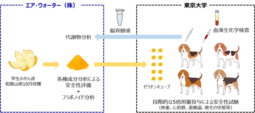 東京大学大学院農学生命科学研究科(以下、東京大学)の米澤智洋准教授の研究グループとエア・ウォーター株式会社(以下、エア・ウォーター)は、みかんの皮粉末を犬に投与した際の安全性に関する共同研究成果を得ましたので、お知らせいたします。